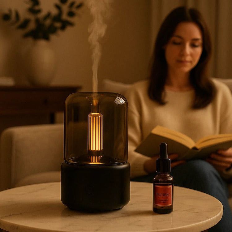 Browse through real-life moments of cozy candlelight enhancing work desks, nurseries, and travel escapes. See how this diffuser elevates mood and air quality in any space.